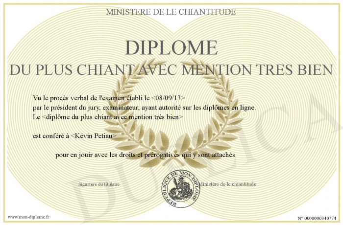 Envoyez par email votre Diplôme du plus chiant avec mention très bien personalisé