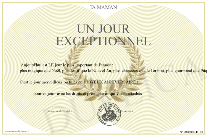 Envoyez par email votre Un jour exceptionnel personalisé