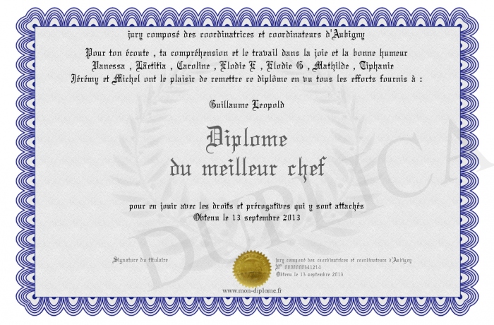 Envoyez par email votre Diplôme du meilleur chef personalisé