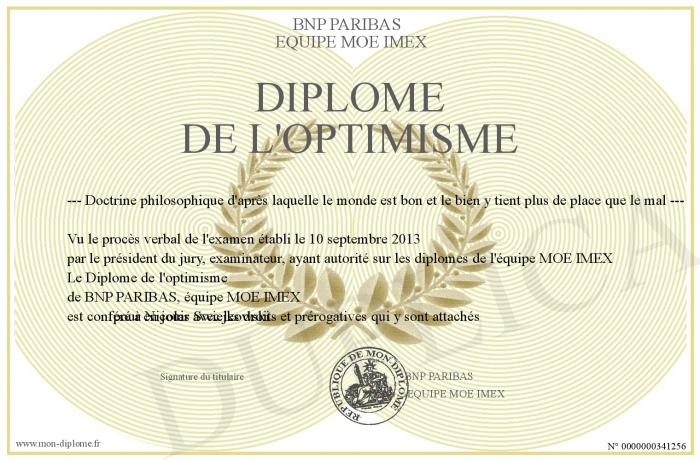 Envoyez par email votre Diplome de l'optimisme personalisé
