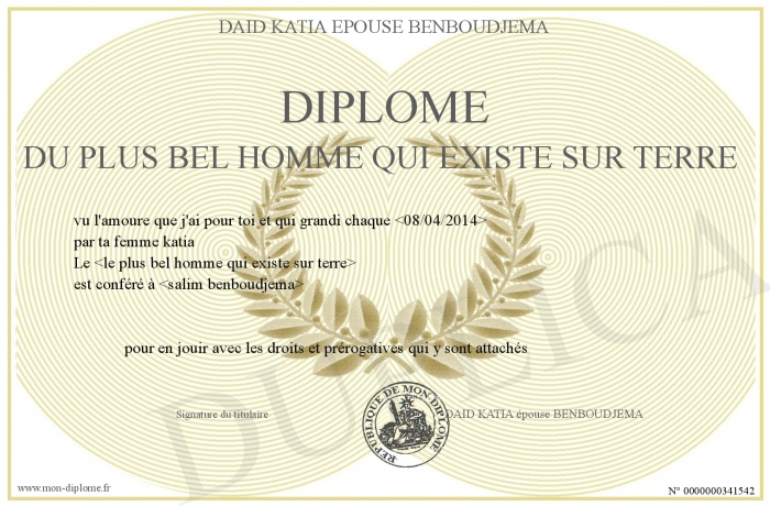 Envoyez par email votre diplôme du plus bel homme qui existe sur terre personalisé