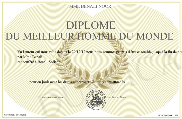 Envoyez par email votre Diplôme du meilleur homme du monde personalisé