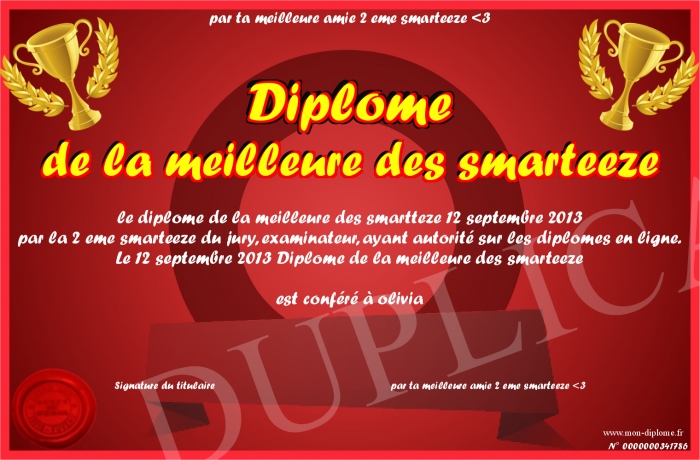 Envoyez par email votre Diplôme de la meilleure des smarteeze personalisé