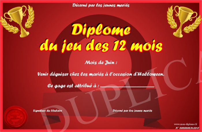 • Diplôme du jeu des 12 mois