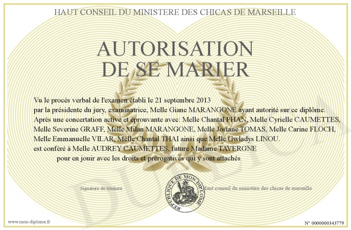 Envoyez par email votre Autorisation de se marier personalisé