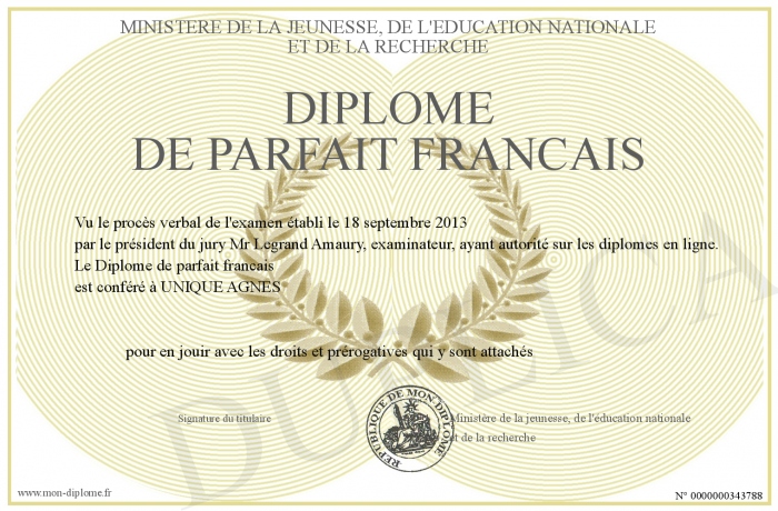 Envoyez par email votre Diplôme de parfait francais personalisé