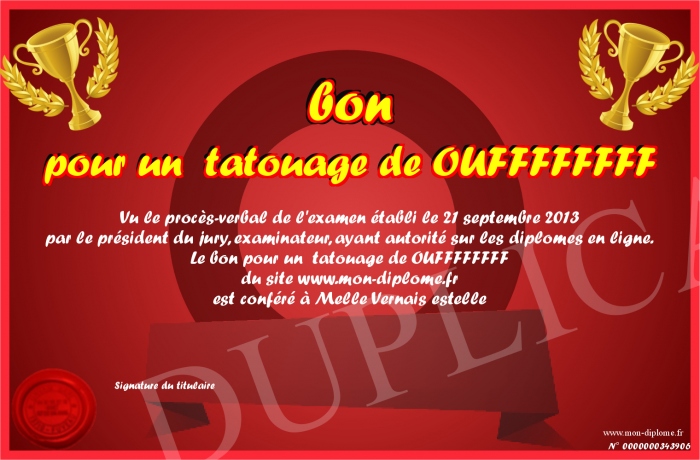 Envoyez par email votre bon pour un tatouage de OUFFFFFFFF personalisé