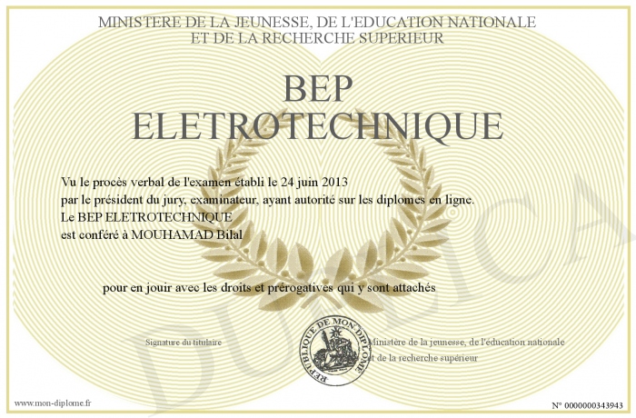 Envoyez par email votre BEP ELETROTECHNIQUE personalisé