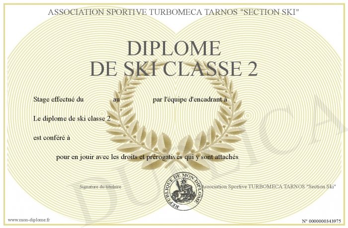 Envoyez par email votre diplôme de ski classe 2 personalisé