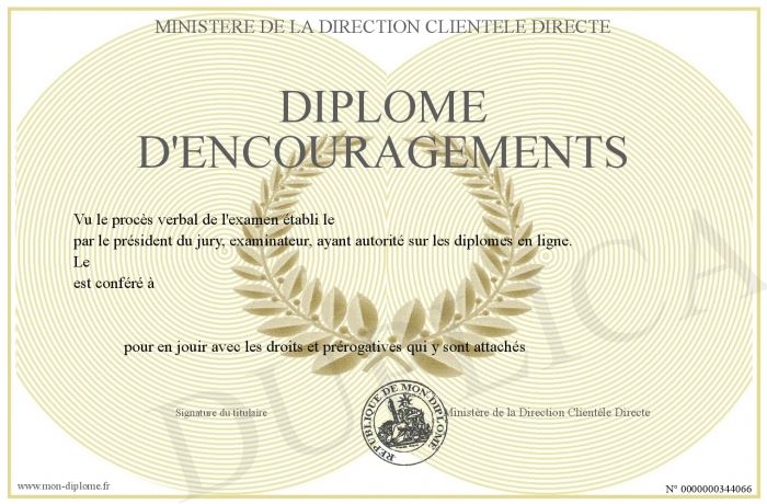 Envoyez par email votre Diplôme d'Encouragements personalisé