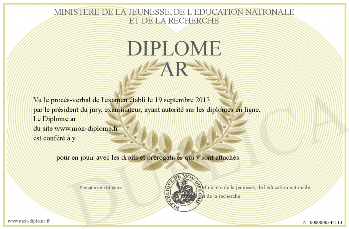 Envoyez par email votre Diplôme ar personalisé