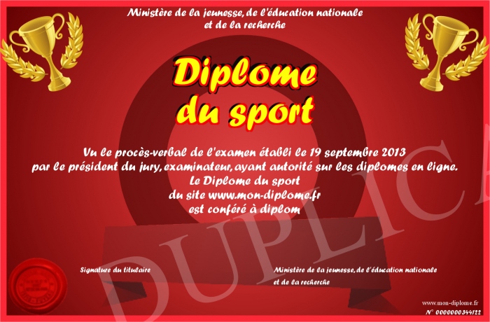 Envoyez par email votre Diplôme du sport personalisé