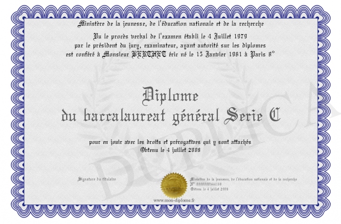 Envoyez par email votre Diplôme du baccalaureat général Serie C personalisé