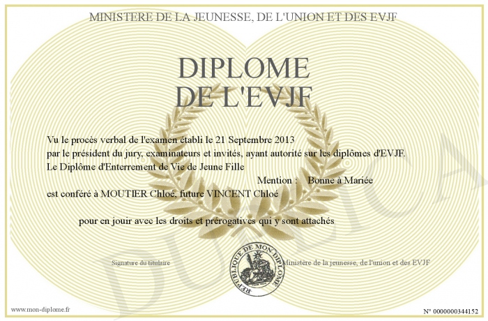 Envoyez par email votre Diplôme de l'EVJF personalisé
