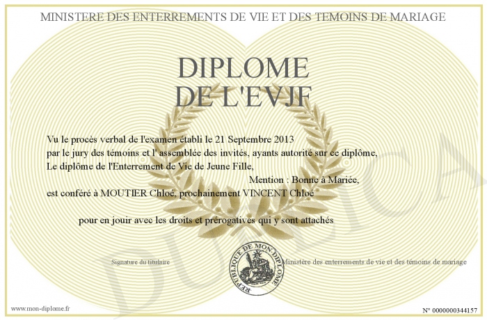 Envoyez par email votre Diplôme de l'EVJF personalisé