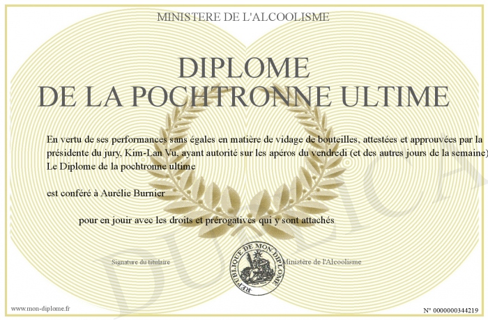 Envoyez par email votre Diplôme de la pochtronne ultime personalisé