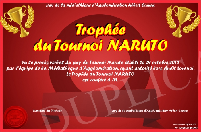 Envoyez par email votre Trophée du Tournoi NARUTO personalisé