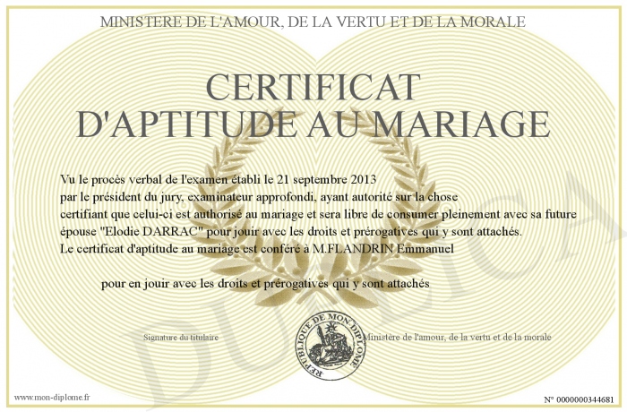 Envoyez par email votre certificat d'aptitude au mariage personalisé