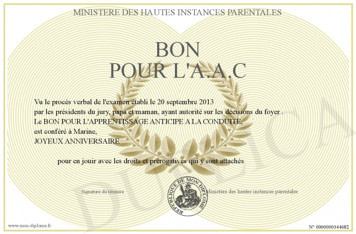 Envoyez par email votre BON POUR L'A.A.C personalisé