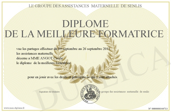 Envoyez par email votre Diplôme de la meilleure formatrice personalisé