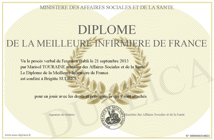 Envoyez par email votre Diplôme de la Meilleure Infirmière de France personalisé