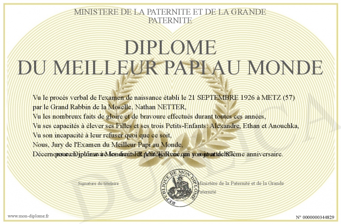 Envoyez par email votre Diplôme du Meilleur PAPI au MONDE personalisé