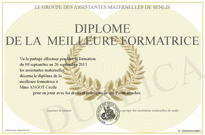 Envoyez par email votre Diplôme de la meilleure formatrice personalisé