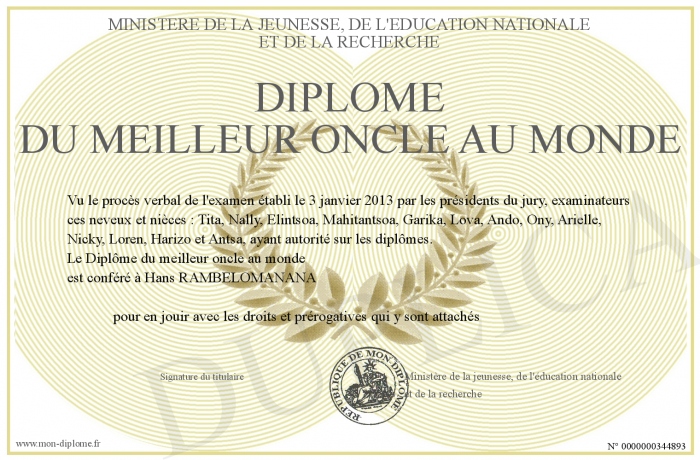 • Diplôme du meilleur oncle au monde