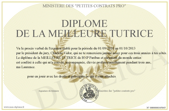 Envoyez par email votre Diplôme de la Meilleure Tutrice personalisé
