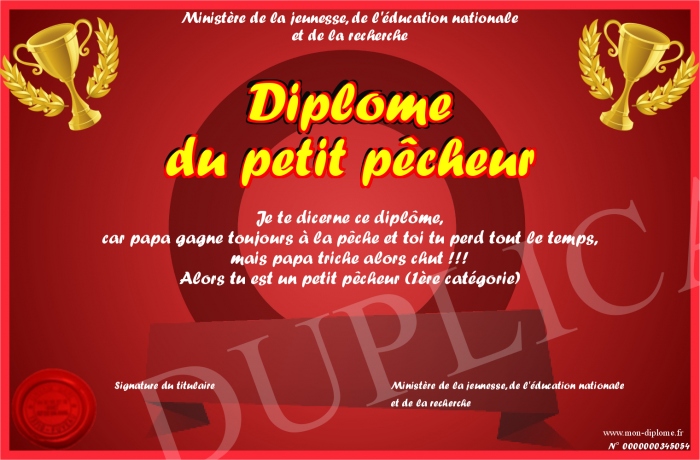 Envoyez par email votre Diplôme du petit pêcheur personalisé