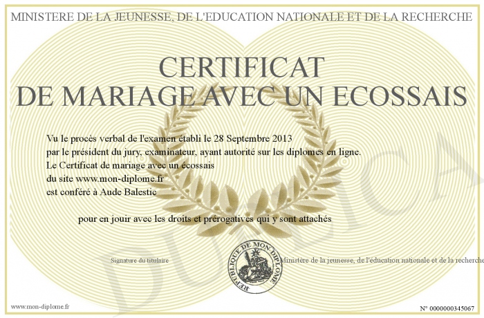 Envoyez par email votre Certificat de mariage avec un écossais personalisé
