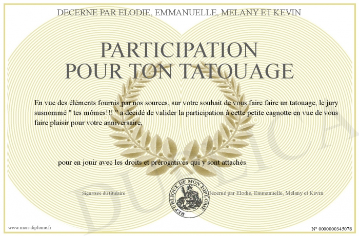 Envoyez par email votre Participation pour ton tatouage personalisé