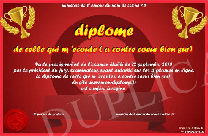 Envoyez par email votre diplome de celle qui m 'ecoute ( a contre coeur bien sur) personalisé