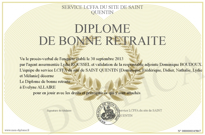Envoyez par email votre Diplôme de bonne retraite personalisé