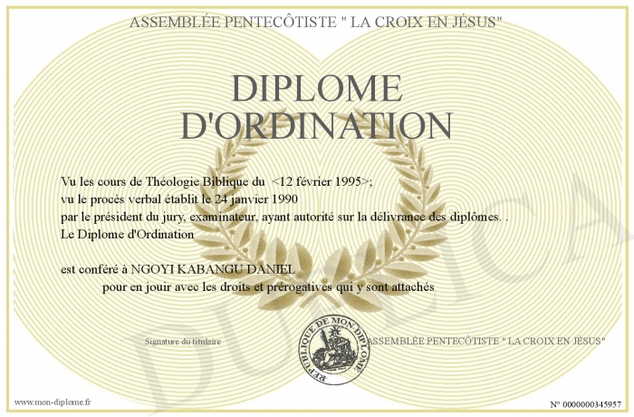 Envoyez par email votre Diplôme d'Ordination personalisé