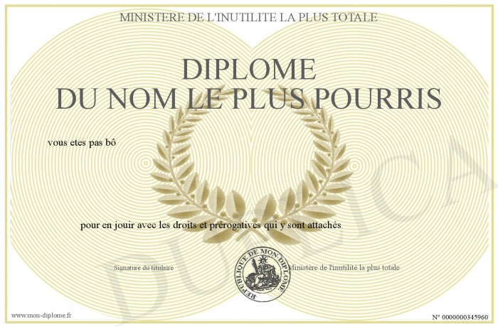 Envoyez par email votre Diplôme du nom le plus pourris personalisé