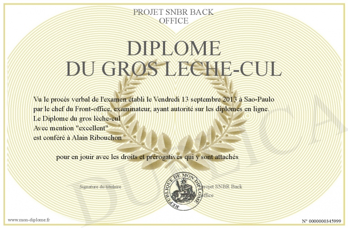 Envoyez par email votre Diplôme du gros lèche-cul personalisé