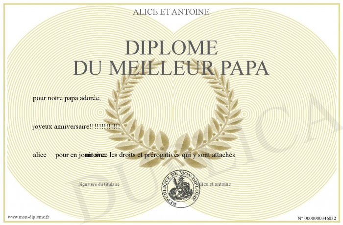 Envoyez par email votre Diplôme du meilleur papa personalisé