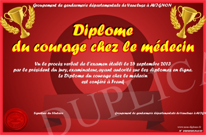 Envoyez par email votre Diplôme du courage chez le médecin personalisé