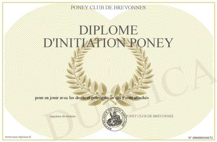 Envoyez par email votre DIPLOME D'INITIATION PONEY personalisé