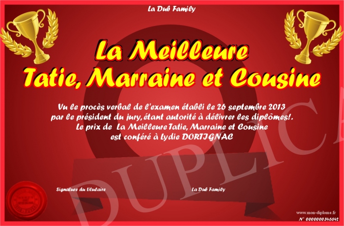 Envoyez par email votre La Meilleure Tatie, Marraine et Cousine personalisé