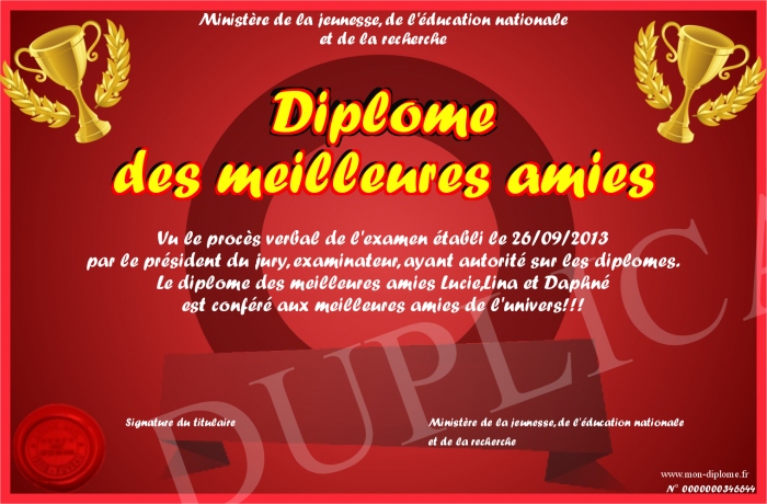 Envoyez par email votre Diplôme des meilleures amies personalisé