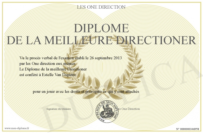 Envoyez par email votre Diplôme de la meilleure Directioner personalisé