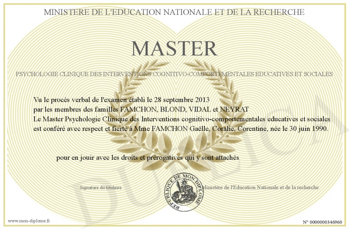 Envoyez par email votre Master Psychologie Clinique des Interventions cognitivo-comportementales educatives et sociales personalisé