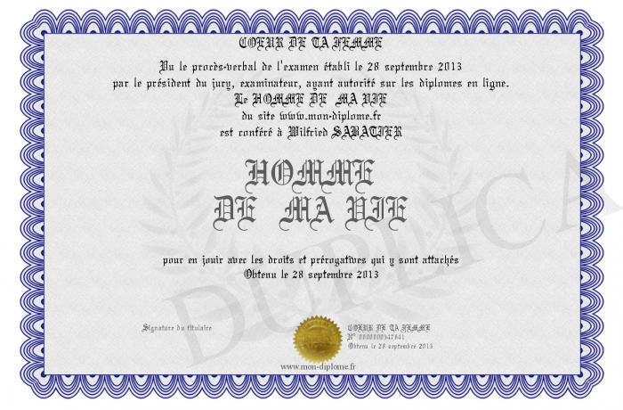 Envoyez par email votre HOMME DE MA VIE personalisé