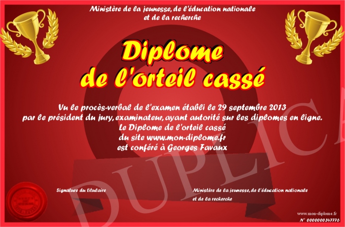 Envoyez par email votre Diplôme de l'orteil cassé personalisé