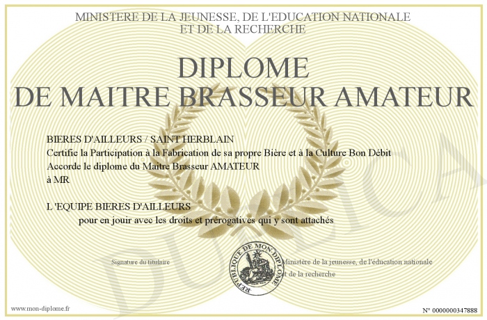 Envoyez par email votre Diplôme de MAITRE BRASSEUR AMATEUR personalisé