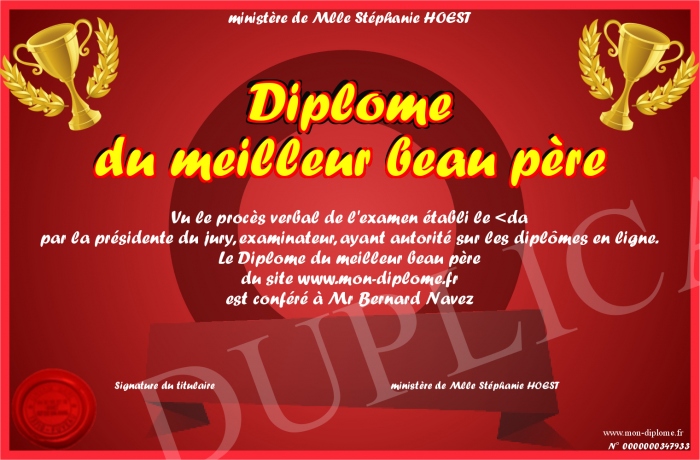 Envoyez par email votre Diplôme du meilleur beau père personalisé