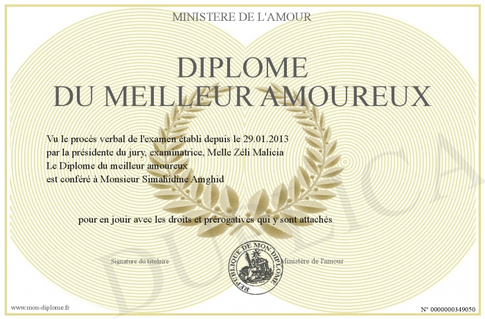 Envoyez par email votre Diplome du meilleur amoureux personalisé