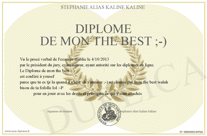 Envoyez par email votre Diplôme de mon the best ;-) personalisé